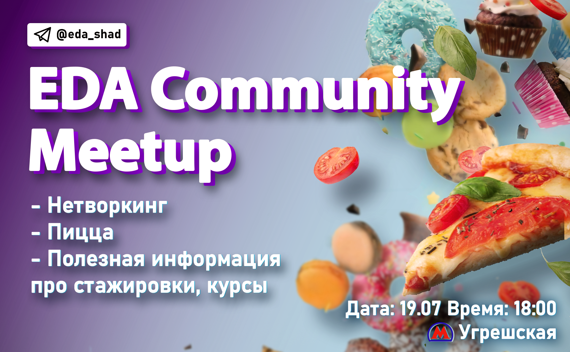 На нашем бесплатном мероприятии будет пицца, напитки и много-много общения!